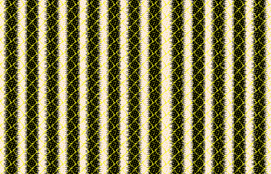 Mock-up in ProWeave for a cotton warp ikat using rusty iron and jaggery vat and weld in the weft.