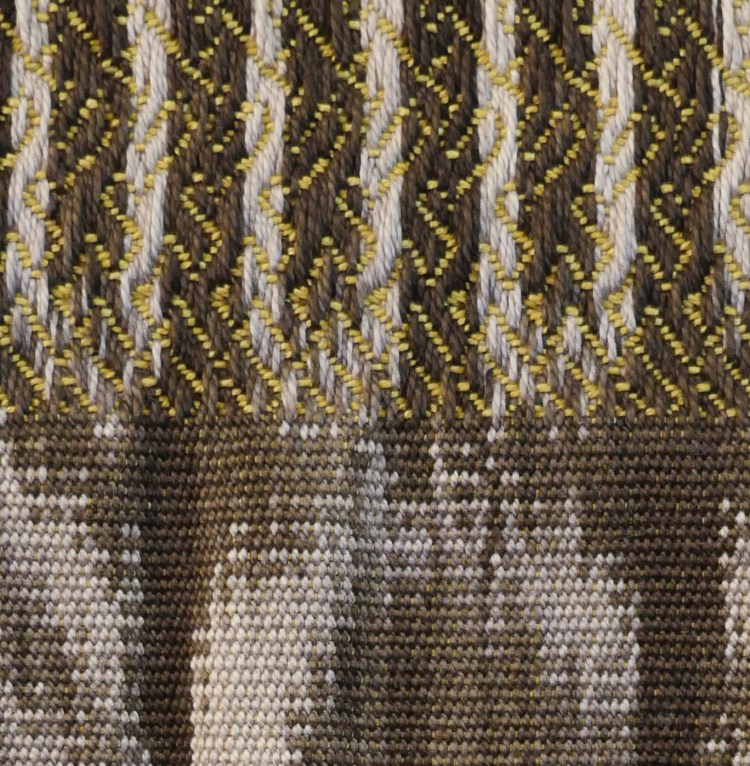 This weaving presents three compelling words in response to bloody and deadly protests taking place in Gaza from March to May 2018. “Gaza, Scar, Camp” speak to experiences both Jews and Palestinians have lived with in profound ways. For millennia Jews endured the scars of hate, ostracization, and pogroms. The horrific experience of the Nazi death camps is indelible and enduring. Palestinians in Gaza have lived in desperate straits over decades and generations. Israeli and Egyptian blockades, checkpoints and roadblocks make access to basic necessities such as school, food, health services, and work extremely difficult. A solution to the Palestinian crisis is a humanitarian necessity and needs to be addressed in the larger context of a volatile, destabilized region.