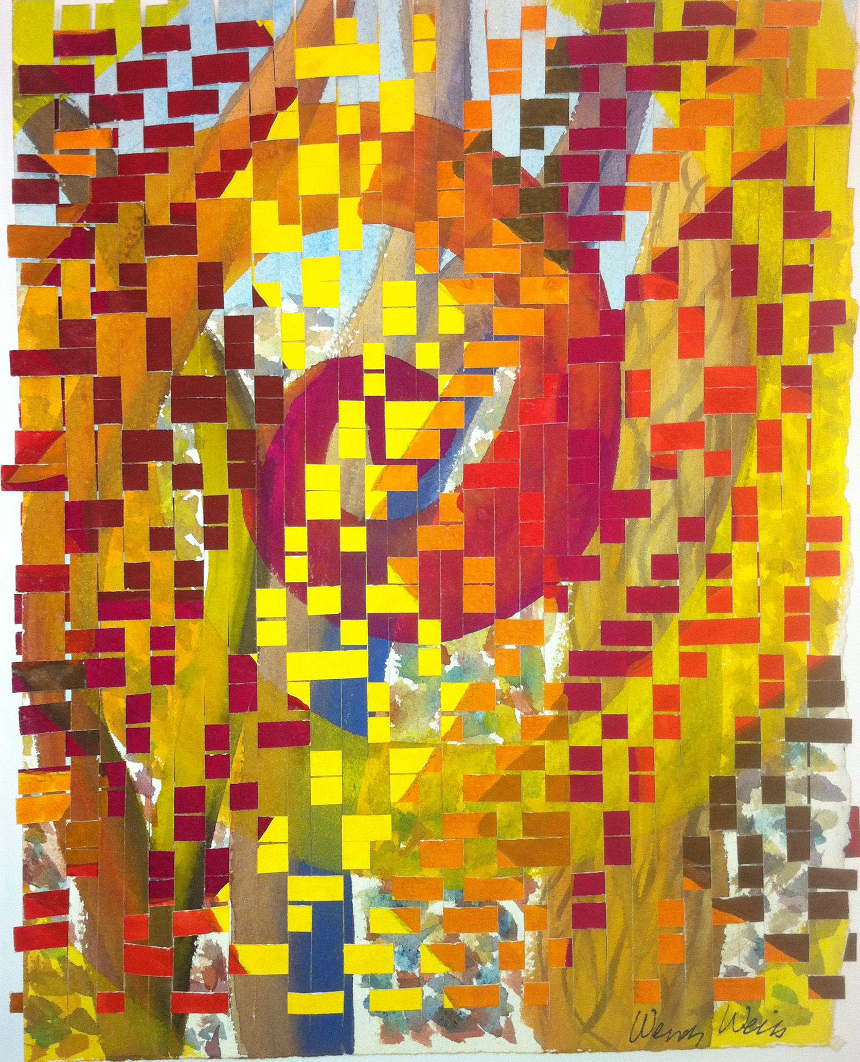 . Weiss draws on the textures and linear elements of the places where she walks. The environment is immersive, expansive and playful yet contained.